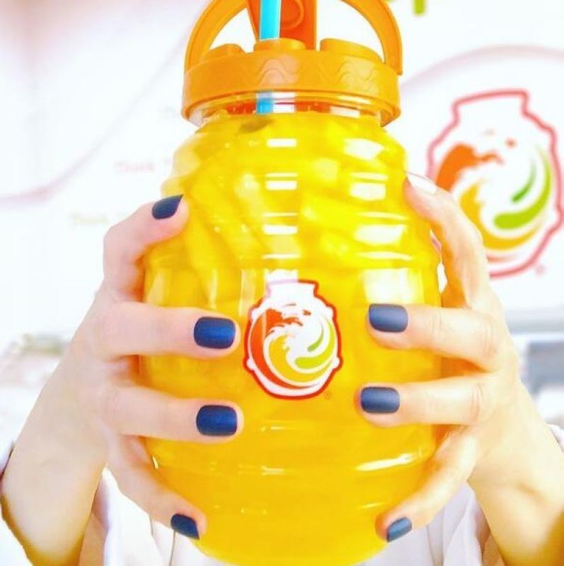 Guci minuman PET 1,5 Liter / 3 Liter dengan logo dan tutup khusus untuk toko jus