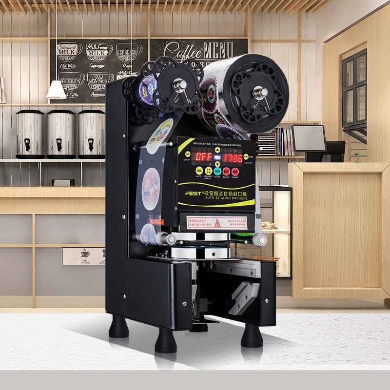 Mesin penyegel toko teh susu otomatis Mesin penyegel susu kedelai komersial Mesin penyegel cangkir minuman dingin dan panas kertas plastik mesin penyegel cangkir universal